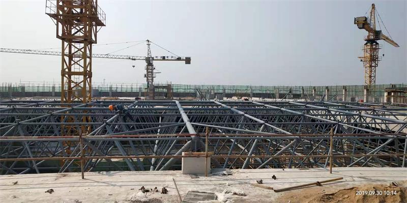 點支承網(wǎng)架比周邊支承的網(wǎng)架高度要大一些。當(dāng)網(wǎng)架中有穿行管道時,網(wǎng)架高度要滿足要求